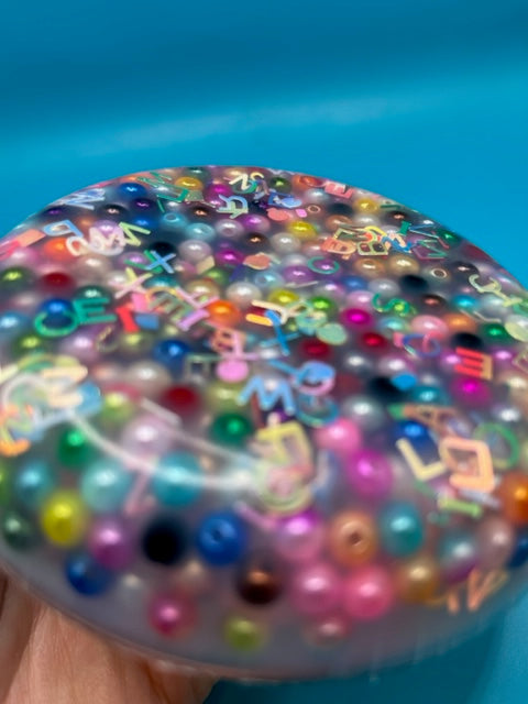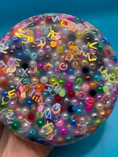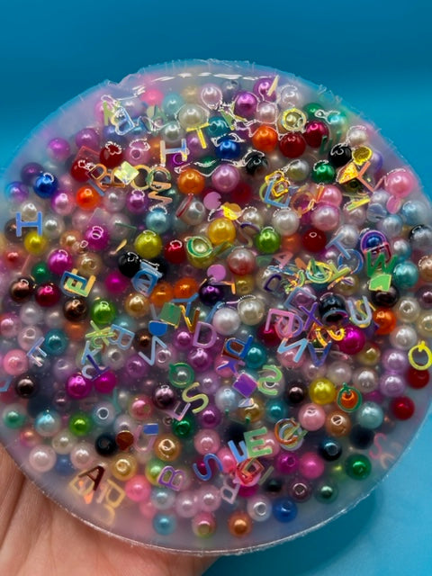 Picking Pads are an excellent way to soothe anxiety, ease fidgeting, and calm skin and hair picking. They are a great way to pass the time for children and adults just the same. They are great for waiting rooms, doctor's offices, and other places where you may need to pass the time. This challenge pearl bead and letter inclusion picky pad is the perfect way to choose not to fidget or pick at your skin/hair (often known as Dermatillomania).
